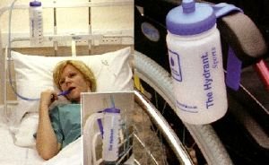 La personne n'a plus qu'à tenir le tube, insérer la valve entre ses lèvres puis mordre et aspirer le liquide |